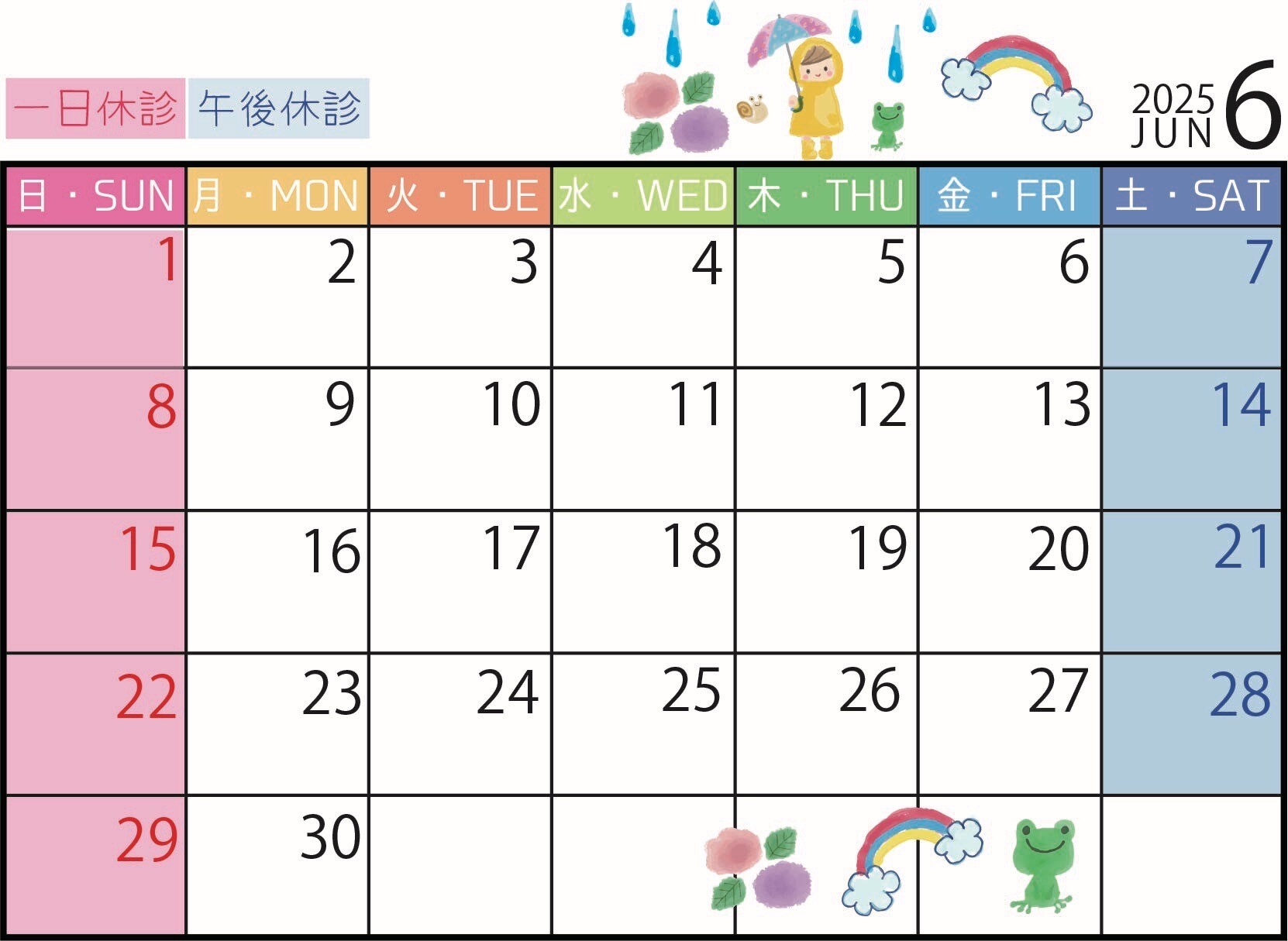 ◇2025年6月の診療日のお知らせ